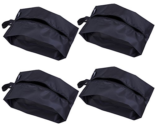 MISSLO Portable Nylon Travel Shoe Bags with Zipper Closure (Pack 4, Black)