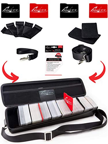 Quiver Black Playing Card Case - Carrying Deck Case with PU Leather Exterior with Double Zipper, Dividers, Hand & Shoulder Strap - Fits up to 1300 Cards - Deck Box Compatible + 100 Card Sleeves