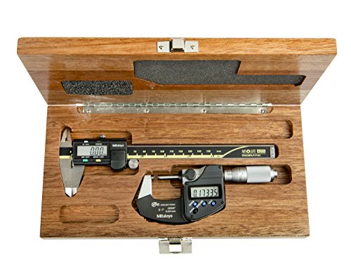Mitutoyo 64PKA077B Digimatic Tool Kit with 500-196-30 AOS ABS 6" Caliper and 293-348-30 1" Friction Thimble Micrometer and a Mahogany Case.