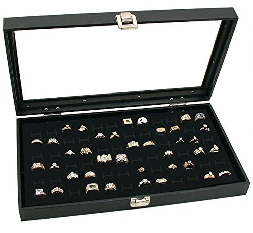 Novel Box Glass Top Black Jewelry Display Case 72 Slot Compartment Ring Tray