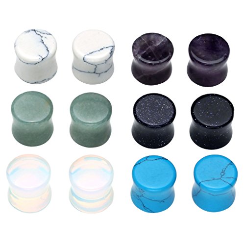 PiercingJ 12pcs Natural Gem Stone Double Flared Saddle Plug Gauge Ear Stretcher Piercing Jewelry Gauge kit 2g 0g 00g 12mm 14mm