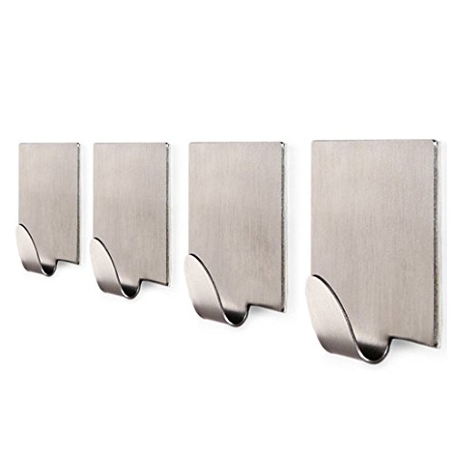 Towel Hooks, KONE 3M Self-adhesive Hook for Bathroom / Kitchen / Office / Home, Heavy Duty Wall Hooks Hanger fit Robe, Hat, Keys, Bags Waterproof Stainless Steel, 4 - Pieces