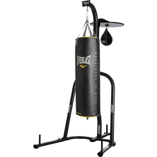 Everlast Dual Station Punching Bag Stand w/ 100 lb PowerCore Heavy Bag and Everhide Speed Bag