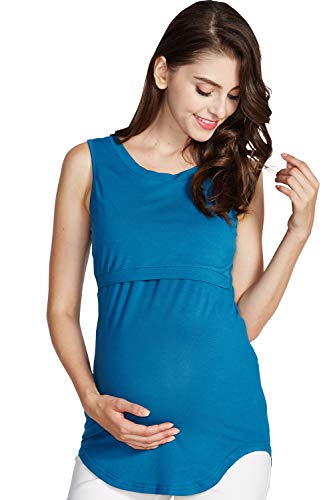 Sweet Mommy Bamboo Simple Maternity and Nursing Long Tank Top Blue, L