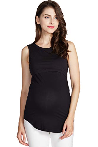 Sweet Mommy Bamboo Simple Maternity and Nursing Long Tank Top Black, M