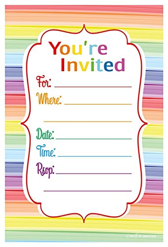 Colorful Rainbow Party Invitations - Fill In Style (20 Count) With Envelopes