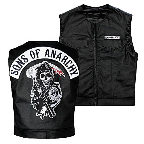 Sons Of Anarchy Officially Licensed Black Redwood Original Samcro Biker Vest with Reaper Patch - Size: Small