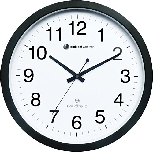 Ambient Weather RC-1400WB 14" Atomic Radio Controlled Wall Clock, White/Black