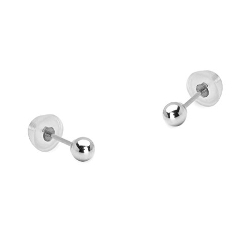 14k White Gold 2-8mm Plain Hollow Gold Ball Children Friction Baby Girls Pushback Earrings