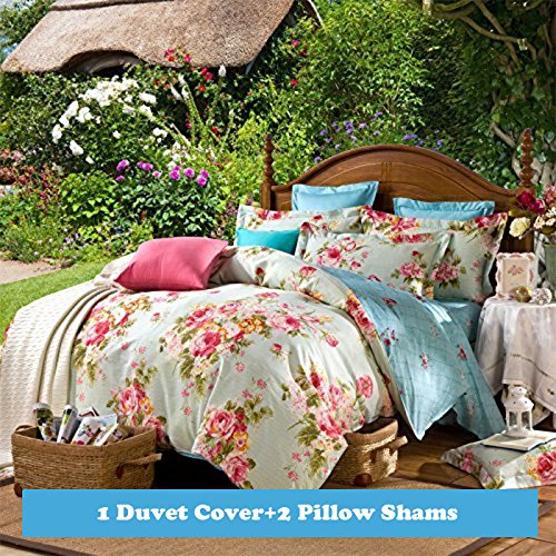 Ttmall Twin Full Queen Size 100%cotton 3-pieces Green Yellow Pink Blue Peony Flowers Floral for Girls Printed Duvet Cover Sets (Queen, 1duvet Cover+2pillowcases)