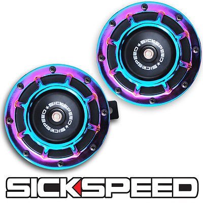 Sickspeed 2Pc Neo Chrome Super Loud Compact Electric Blast Tone Horn Car/Truck/SUV 12V P3 for Subaru Impreza
