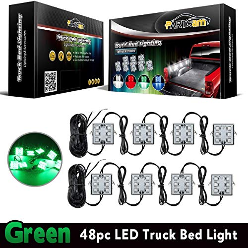 Partsam Truck Bed Light Ultra Bright Exterior Rear Work Box Trunk Green LED Lighting Kit 8pods 48LED Waterproof Cargo Pickup Trunk Light Replacement for Dodge Ram/Ford/GMC