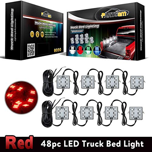 Partsam 8Pods Bright Truck Bed Lighting Kits 48 LED Red Rear Work Box Truck Pickup Cargo Bed Tail Light Universal for 12V Truck SUV Van