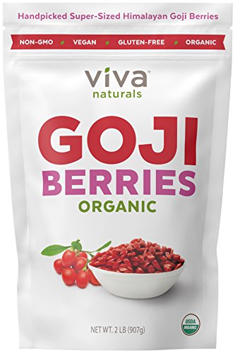 Viva Naturals Organic Dried Goji Berries, 2lb - Premium Himalayan Berries Perfect for Baking, Teas, Trail Mixes and More