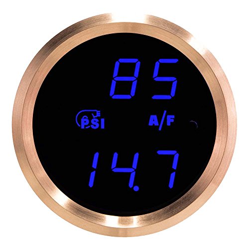 VEI Systems Dual-Display Gauge: 90 PSI Vacuum-Boost and wideband air-Fuel Ratio (Blue/Silver)