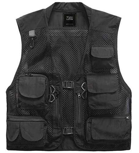 ZSHOW Men's Mesh Fishing Vest Multi Pockets Outdoor Travel Jacket(Black,Large)
