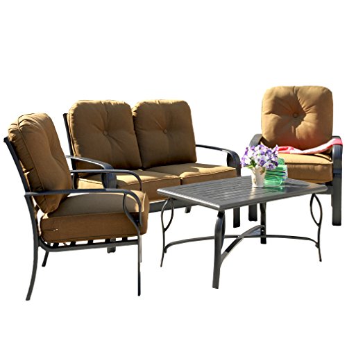 Blue Wave Sereno Bay 4 Piece Cushioned Patio Set in Sunbrella, Linen Sesame