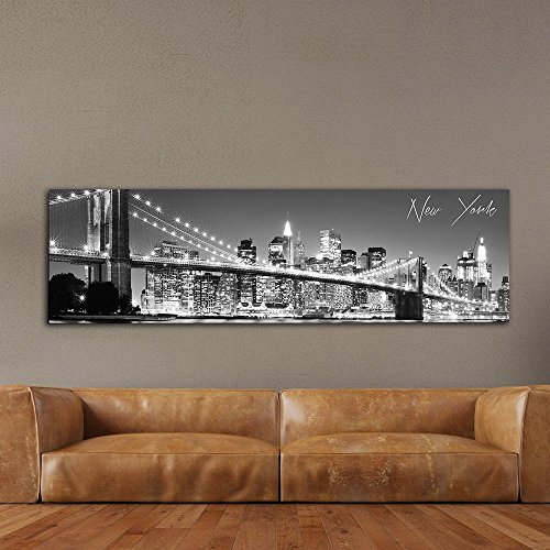 WallsThatSpeak Panoramic New York 2 Cityscape Picture, Black and White Stretched Canvas Art Prints, Wall Decoration for Bedroom or Office, Framed and Ready to Hang, 14” x 48”