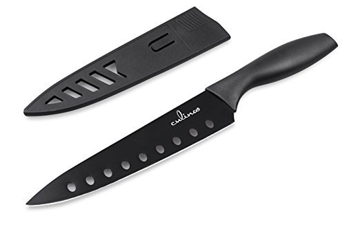 Culina 8-Inch Nonstick Carbon Steel Sushi Knife with Sheath, Black