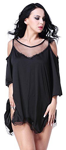 Women's Nightgown Off Shoulder Babydoll Lingerie Dress Sleepwear Night Shirt, Black, Asian XXXL