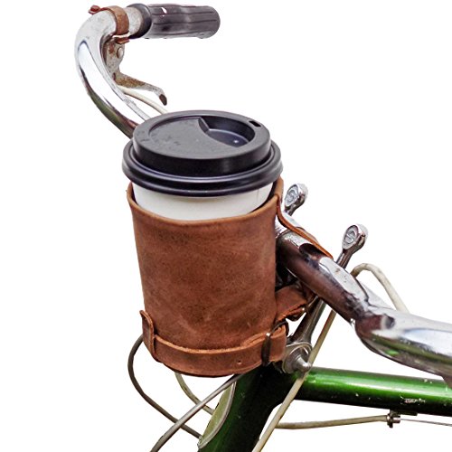 Hide & Drink, Cruzy Leather Bike Cup Holder, Handle Bar for Commuters and Bikers Handmade :: Bourbon Brown