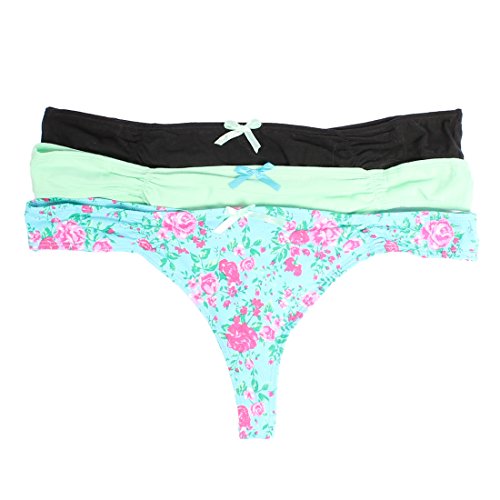 Spree 3 Pack Cotton Thongs 3 Styles to Choose from (S, Set 2)