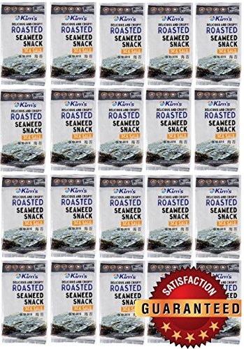 Kim's Premium Natural Roasted Seaweed (Nori/김스낵/紫菜/のり) Snack 20 Pack / Sea Salt, No Msg, Low Calorie, Product of Korea / Gim Seaweed Snacks