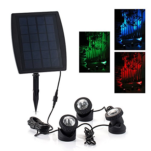 18 LEDs Solar Powered Super Bright 3 Submersible Lamps RGB Color Changing Landscape Spotlight Projection Light for Garden Pool Pond Outdoor Decoration & Lighting, Underwater Light (18 Led Submersible Light)