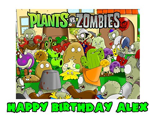 Plants Vs Zombies Edible Image Photo Sugar Frosting Icing Cake Topper Sheet Personalized Custom Customized Birthday Party - 1/4 Sheet - 76550