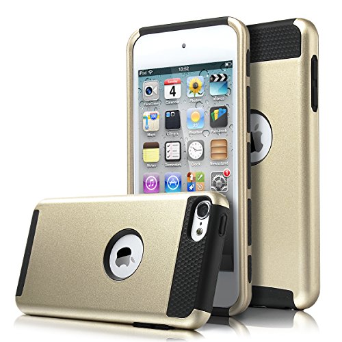 ULAK iPod Touch 6th Generation case,iPod 6 Cases, Dual Layer Slim Protective Hybrid iPod Touch Case Hard PC Cover for Apple iPod Touch 5 6th Generation (Champagne Gold + Black)