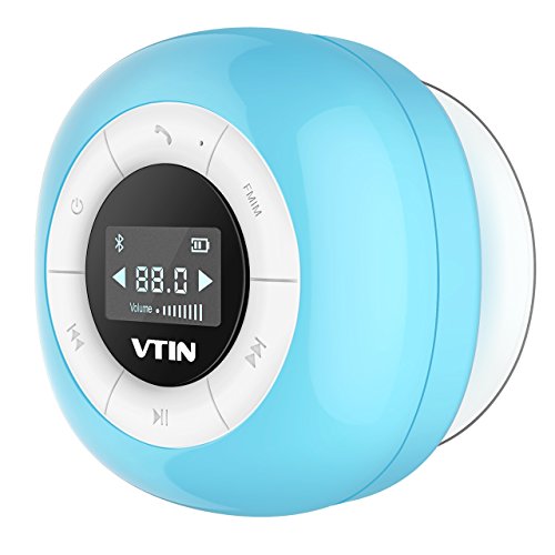 Vtin Relaxer Bluetooth Speaker with FM Radio, Mini Water Resistant Shower Speaker with Bluetooth 4.0, LCD Display, Built-in Mic and Suction Cup - Blue