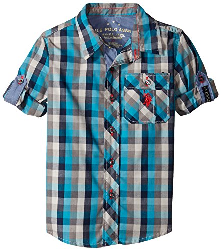 U.S. Polo Assn. Boys' Roll Up Long Sleeve Plaid Sport Shirt