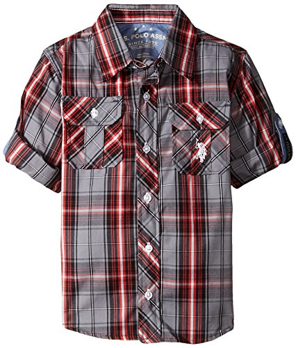 U.S. Polo Assn. Boys' Plaid Pleated Pockets Sport Shirt