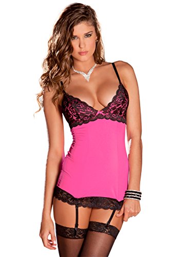 Rene Rofe Women's Hollywood Chemise and G-String Set, Pink, Small/Medium