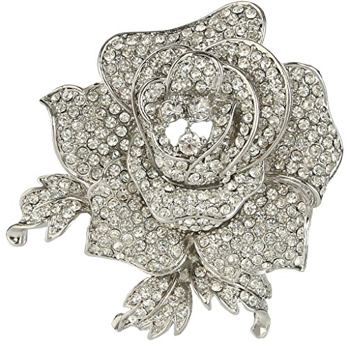 EVER FAITH Women's Austrian Crystal Blooming Beautiful Rose Flower Brooch Clear Silver-Tone