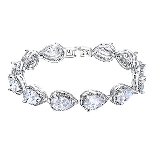 EVER FAITH Prong Zircon Teardrop Wedding Tennis Bracelet Clear Silver-Tone