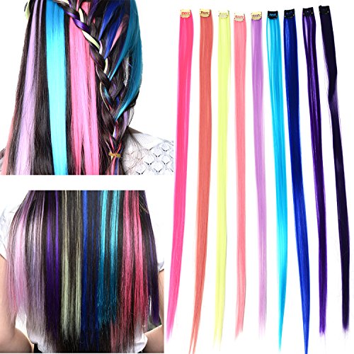 Remylady 22'' Synthetic Fiber Rainbow Clip On In Hair Extensions Party Highlights Straight Hairpieces