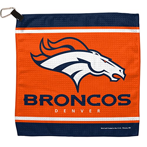 NFL Denver Broncos Waffle Golf Towel with Loop and Carabiner, 13 x 13-Inch