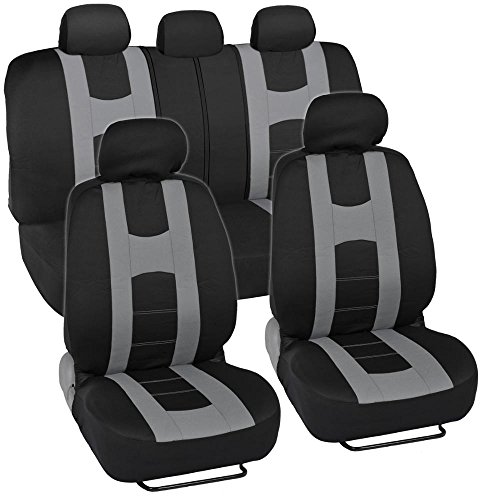 BDK Rome Sport Auto Seat Covers for Car SUV Truck Van - Front & Rear Bench Covering Set, Universal Fit, Split Bench 11 Pieces (Black & Gray)