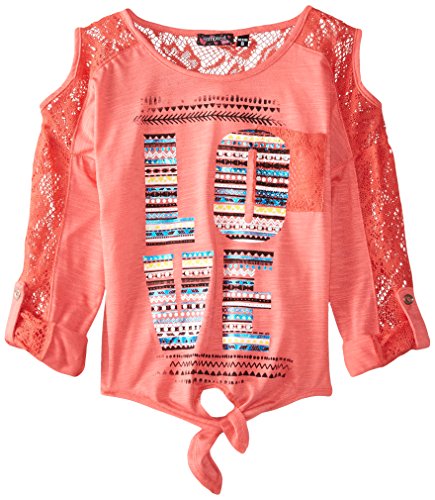 Tempted Big Girls' Cold Shoulder Top, Coral, Large