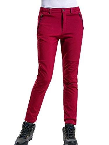 Geval Women's Windproof Waterproof Softshell Fleece Ski Pants(Oriental Red,XS)