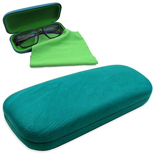 MyEyeglassCase Hard Eyeglass Case for women medium clam shell holder for glasses and small sunglasses w/Cloth (AS126 Croco Red)