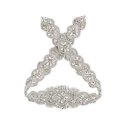 QueenDream Silver rhinestone belt White Ribbon bridal sash applique crystal pearls beaded
