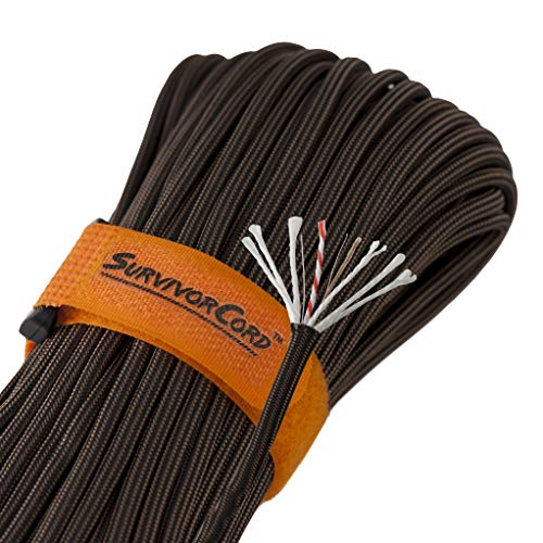 TITAN SurvivorCord | BRONZE | 100 Foot Hank | Patented Military Type III 550 Paracord / Parachute Cord (3/16" Diameter) with Integrated Fishing Line, Fire-Starter, and Snare Wire
