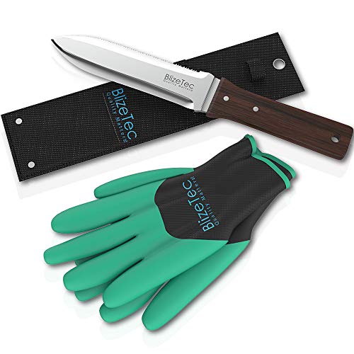 BlizeTec Hori Hori Knife Multipurpose Gardening Digging Tool Kit with Shealth and Gloves