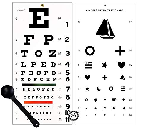 EMI OCC-WSK 3 piece set - Occluder Plus Snellen AND Kindergarten/Children Plastic Eye Vision Exam Test Wall Charts 22 by 11 in.