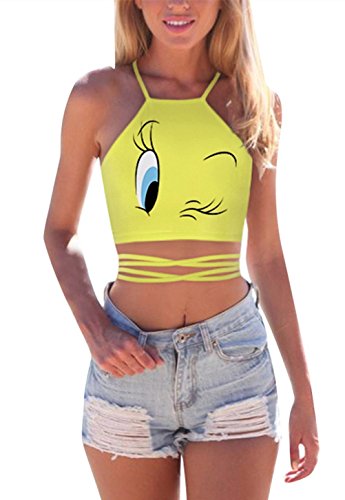 Cfanny Women's Cute Casual Sleeveless Cartoon Print Tank Crop Top Vest