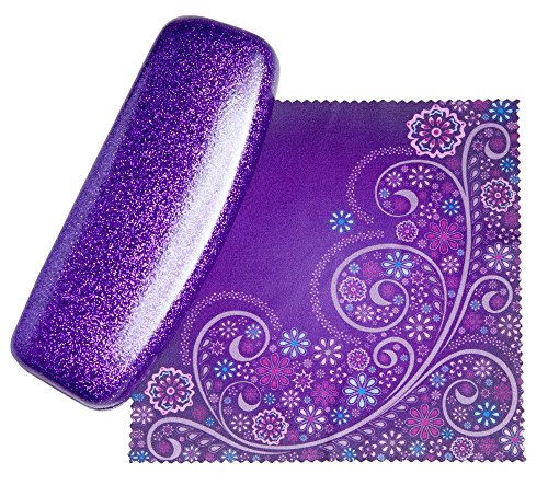 Mystic Purpl Medium Premium Fashion Women's Hard Eyeglasses Case | Smooth Glitter | Bonus Cleaning Cloth
