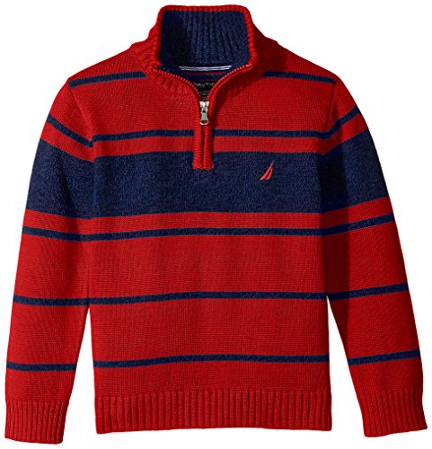 Nautica Boys' Quarter Zip Engineered Stripe Sweater with Indigo Marl