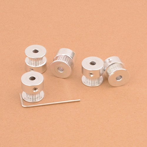E-accexpert 5pcs 2gt Synchronous Belt Pulley Gt2 Synchronous Pulley 20 Gear inner Hole 5mm and a wrench for 3d Printer